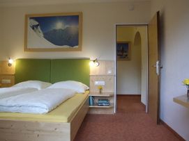 Hell, modern und freundlich vom einheimischen Möbel-Tischler aus Deferegger Fichten-Holz eingerichtet. Erhältlich als Doppelzimmer und Familienzimmer.